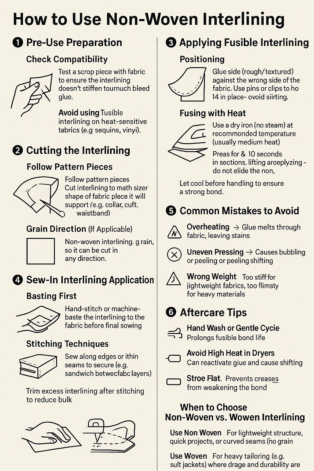 Interlining غیر بافته هیچ دانه ای ندارد ، بنابراین می تواند از هر جهت بریده شود.