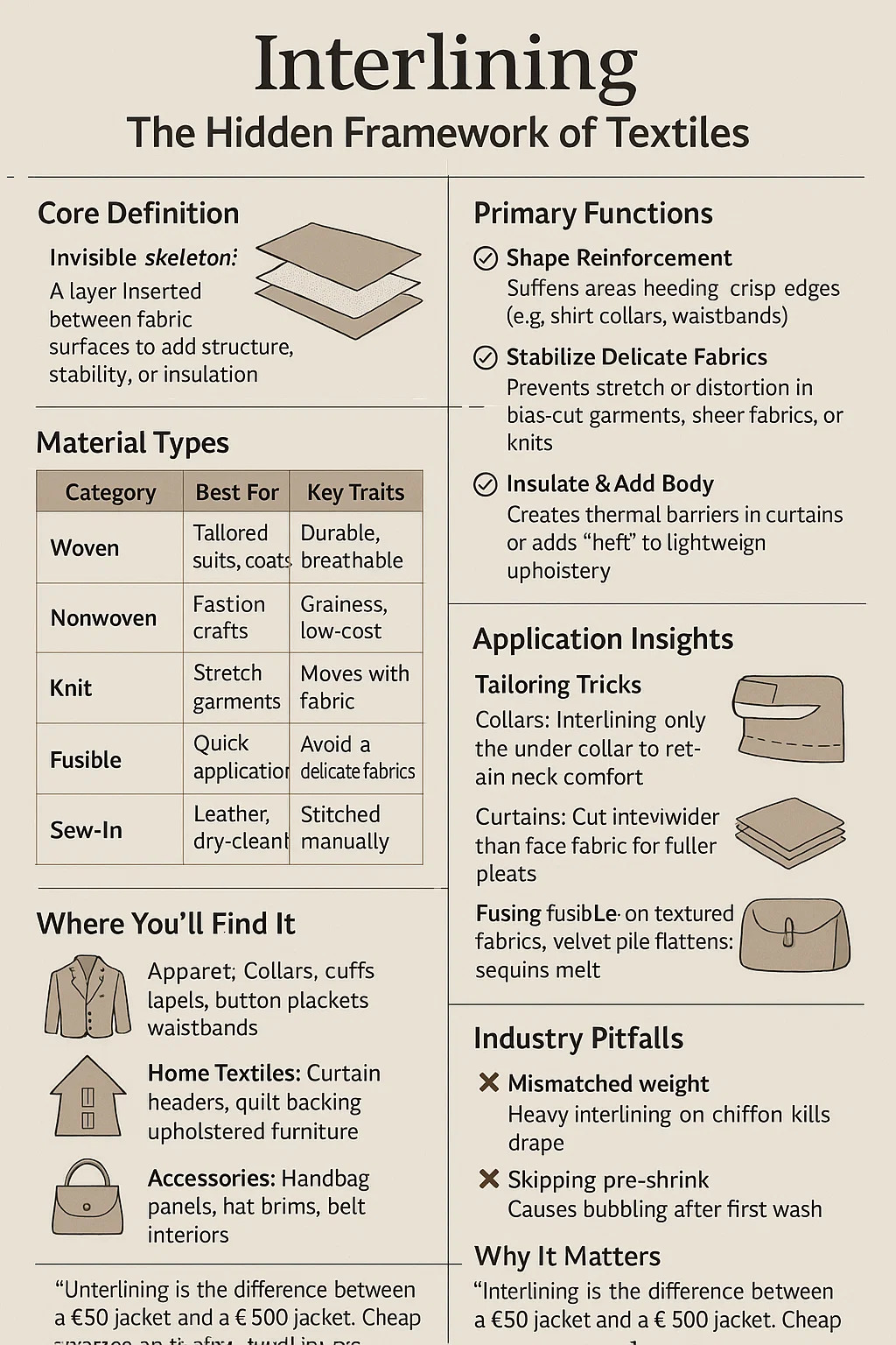 "اسکلت نامرئی": لایه ای که بین سطوح پارچه درج شده است تا ساختار ، پایداری یا عایق را اضافه کند.